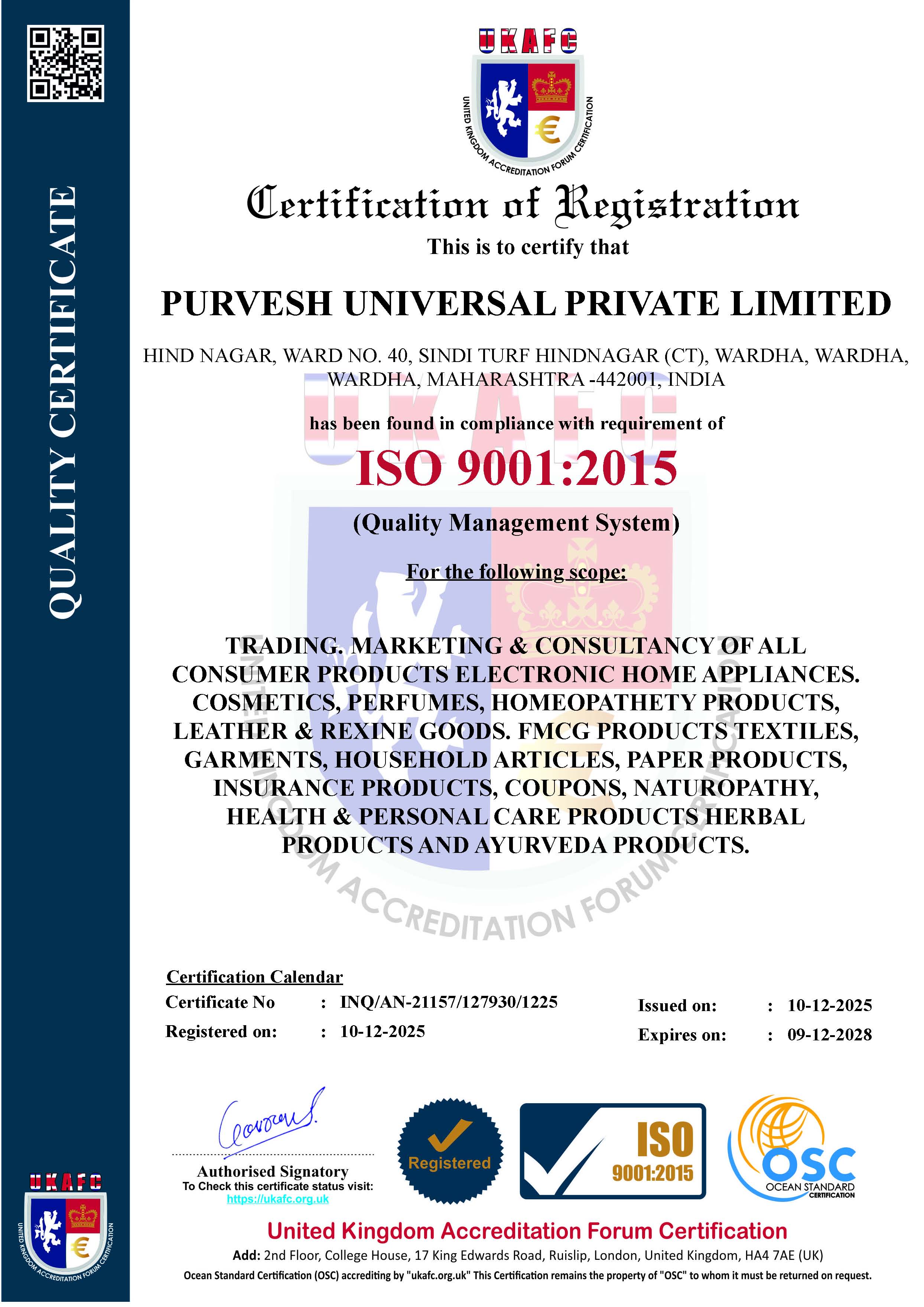 Swasth Jeevan, a brand of Purvesh Universal Pvt. Ltd., operates in full compliance with applicable laws and regulations. All company registrations, certifications, and legal documents are properly maintained to ensure transparency, trust and ethical business practices.