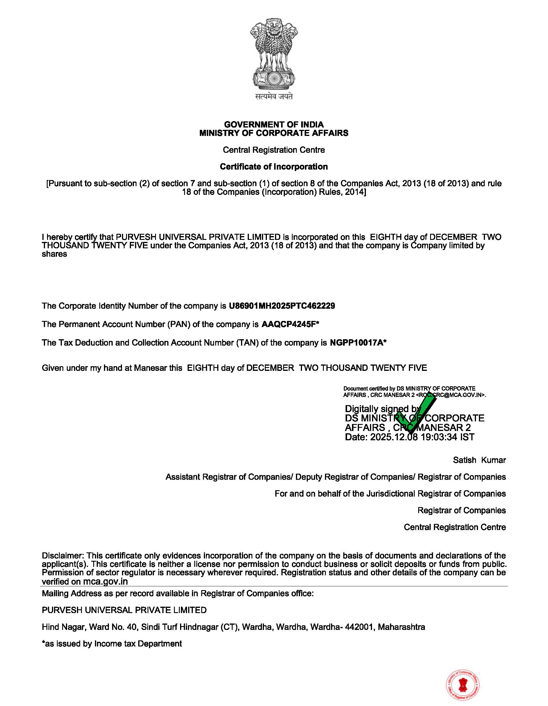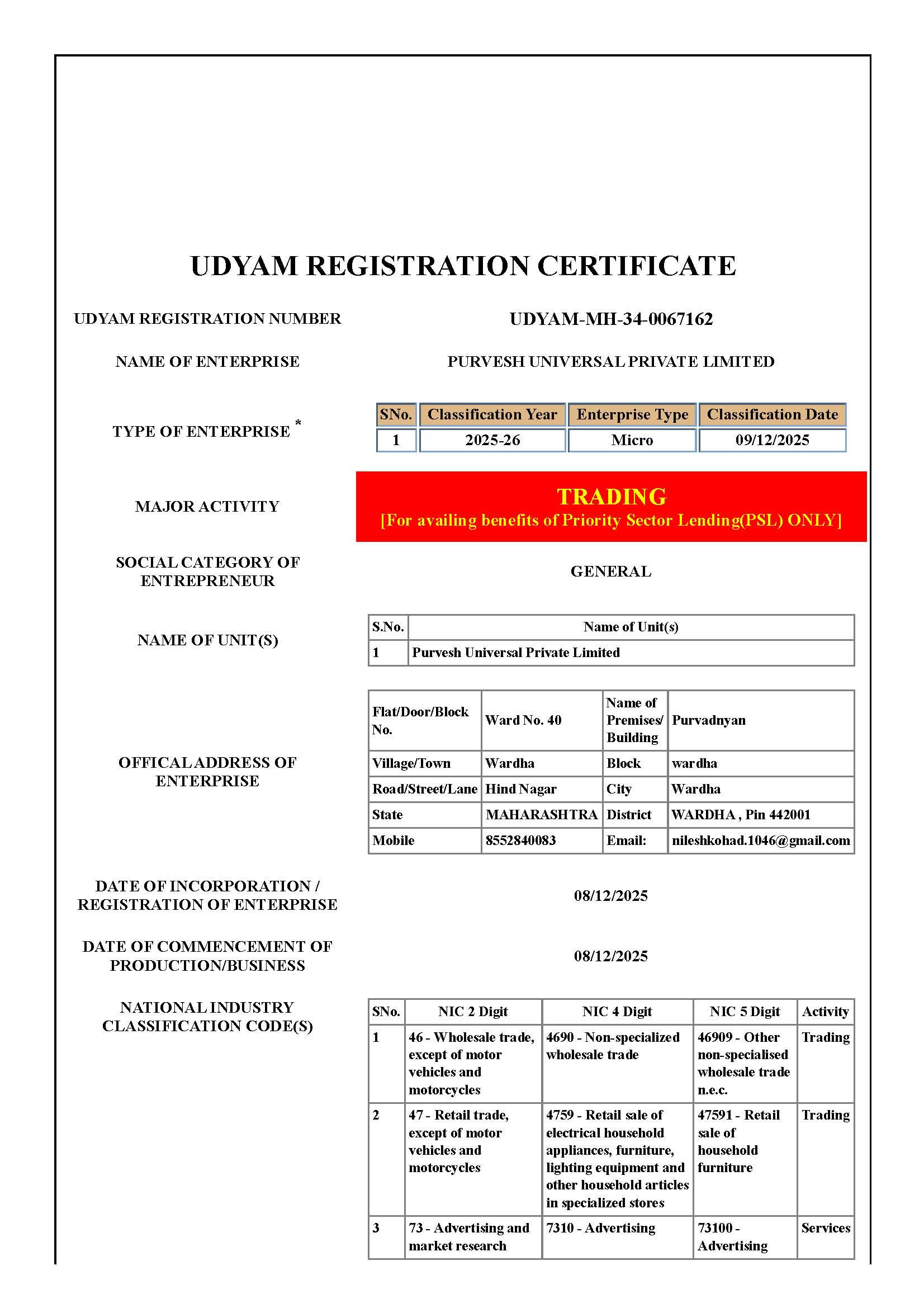 Swasth Jeevan, a brand of Purvesh Universal Pvt. Ltd., operates in full compliance with applicable laws and regulations. All company registrations, certifications, and legal documents are properly maintained to ensure transparency, trust and ethical business practices.